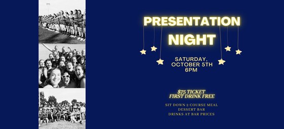 Join us for the Westbourne Grammarians Football Club Presentation Night, where we'll celebrate our season with style. Enjoy a delectable two-course meal followed by a dessert station that’s sure to satisfy your sweet tooth. The evening calls for formal attire, and while drinks will be available at bar prices, your first drink is on us. We look forward to seeing you there for a memorable night of festivities!  Tickets are limited, players and staff will be prioritised. Please note your dietary requirements at check out. **Dietaries: Vegan, Vegetarian, Gluten Free & Halal** SONG REQUESTS!  We are building a spotify playlist that will be used for the fun part of the evening! Please click here to add your favourite songs to the playlist.